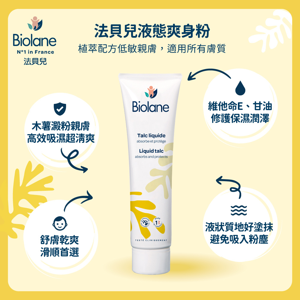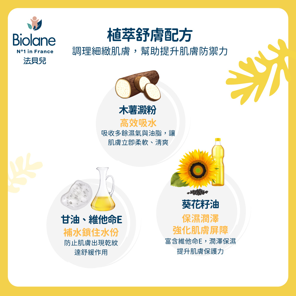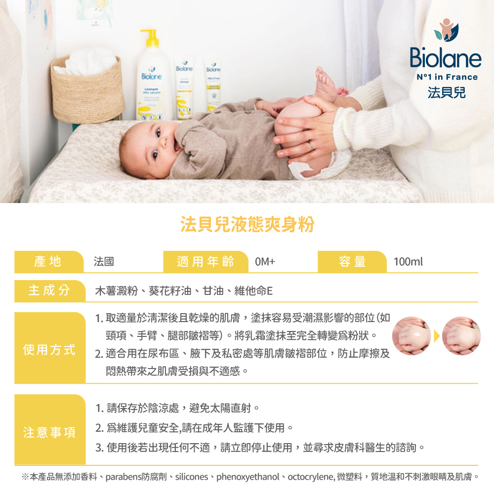 取適量於清潔後且乾燥的肌膚。適合用在尿布區、腋下及私密處等肌膚皺褶部位,防止摩擦及悶熱帶來之肌膚受損及不適感。 |